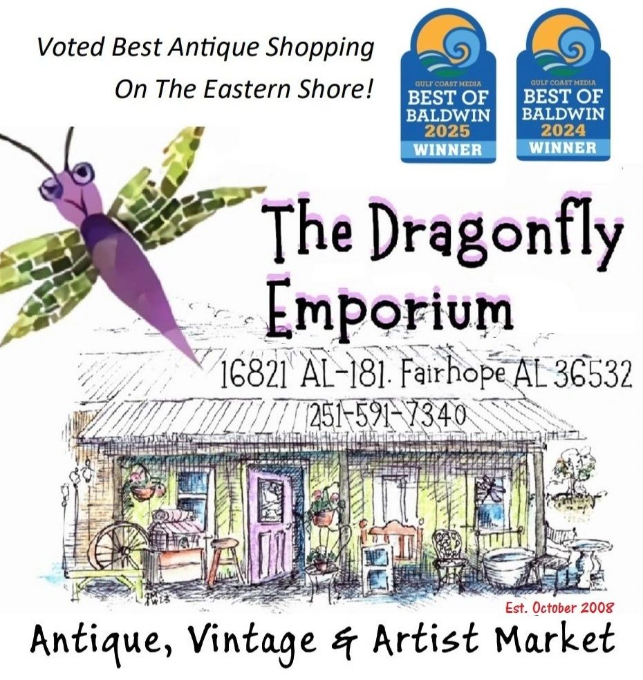 "I’ve been around antiques all my life, and so I got a booth at the Daphne Antique Galleria, and I started the Dragonfly Emporium," she said. "Then I had friends whose relatives passed away, and I helped them sell the belongings."